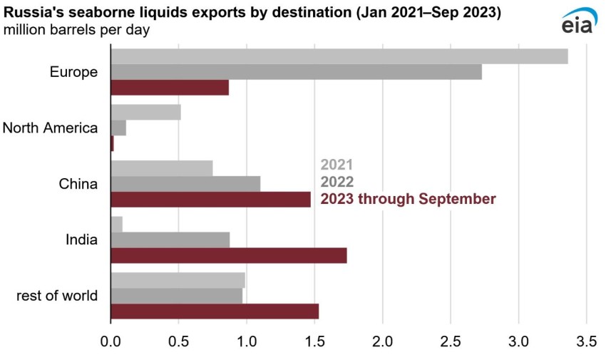 W tym zamieszaniu operatorzy transportujący rosyjską ropę naftową i wytworzone z niej produkty znaleźli swoją niszę. Odczuli jednak wejście na rynek nowych dostawców i zmniejszenie popytu na niektórych rynkach. Analitycy dokonali porównania liczby bezpośrednich rejsów od IV kwartału 2022 r. do IV kwartału 2023 r. Windward stwierdza: „widzimy bezprecedensowy spadek bezpośredniego eksportu ropy z Rosji o 21%. W poprzednich kwartałach 2023 roku średnie kształtowały się na poziomie zbliżonym do analogicznego okresu roku ubiegłego”.
