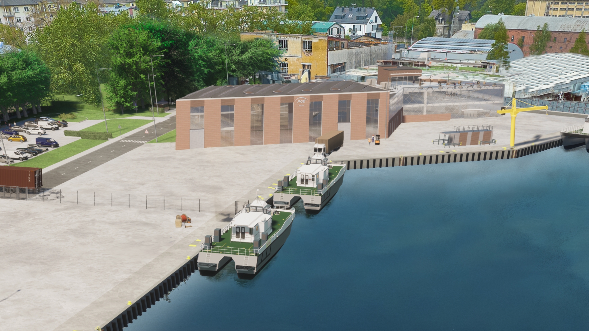 Inwestycja zostanie zlokalizowana w części portowej Ustki na zachodnim brzegu Słupi, w miejscu dawnej przetwórni ryb "Korab". W lecie zakończyły się rozbiórki starych przemysłowych zabudowań, a teren został uporządkowany i wyrównany w oczekiwaniu na rozpoczęcie budowy nowych obiektów, co zaplanowano na wiosnę 2025 rok. PGE Baltica zamknęła etap przyjmowania ofert na inżyniera kontraktu, czyli podmiot, który będzie nadzorował budowę w Ustce w imieniu inwestora.
