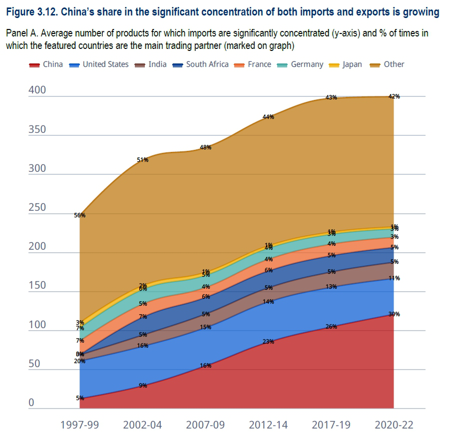 W raporcie OECD stwierdza się, że „większość przepływów handlowych pozostaje stosunkowo zróżnicowana, chociaż koncentracja importu rośnie, ponieważ kraje coraz częściej pozyskują produkty od mniejszej liczby dostawców, niż jest to globalnie możliwe”.