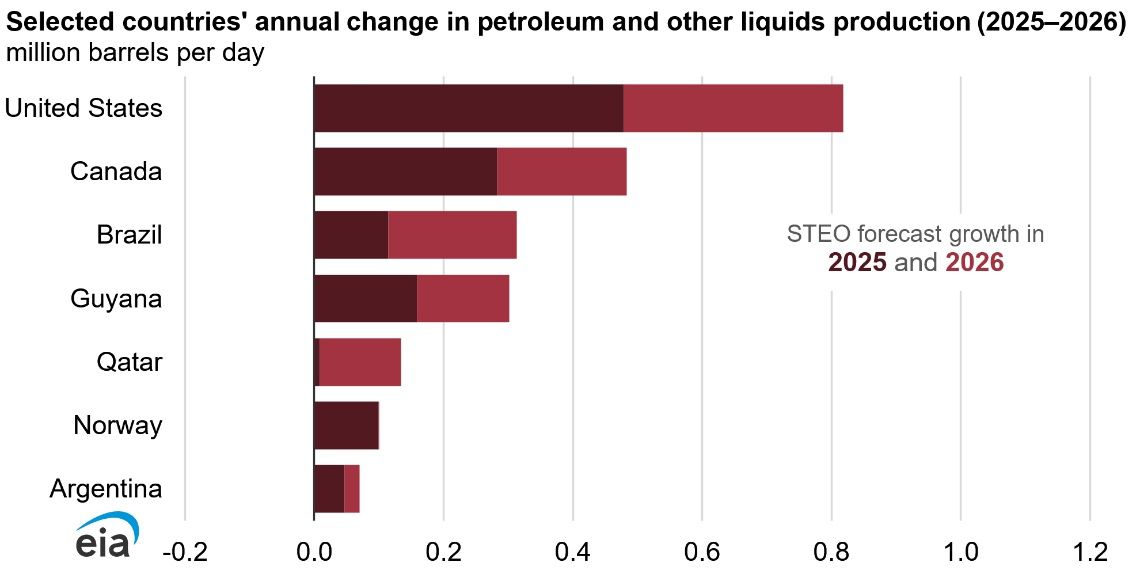 Produkcja ropy naftowej w 2025-2026. Źródło: EIA, 2025