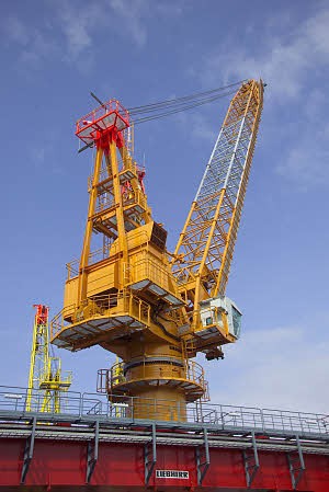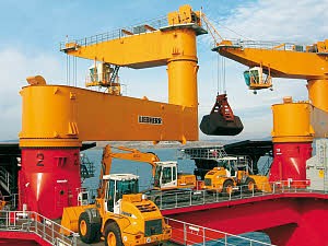 Liebherr konstruuje różne specjalne żurawie do zastosowań w przeładunku towarów w transporcie morskim. W dużych portach kontenerowych pracują szynowe mostownice kontenerowe Liebherr. Seria portowych żurawi samojezdnych Liebherr obejmuje siedem dobrze zestopniowanych wielkości o udźwigu pomiędzy 40 t i 208 t. Do zastosowania na statkach wszelkiego rodzaju i wielkości zaprojektowano serię żurawi statkowych. Urządzenia podnoszące Liebherr produkowane indywidualnie według potrzeb danego klienta znajdują zastosowanie w przemyśle offshore. Paleta produktów do stosowania w morskim przeładunku towarów zostanie powiększona o żuraw do stertowania do transportu kontenerów w portach.