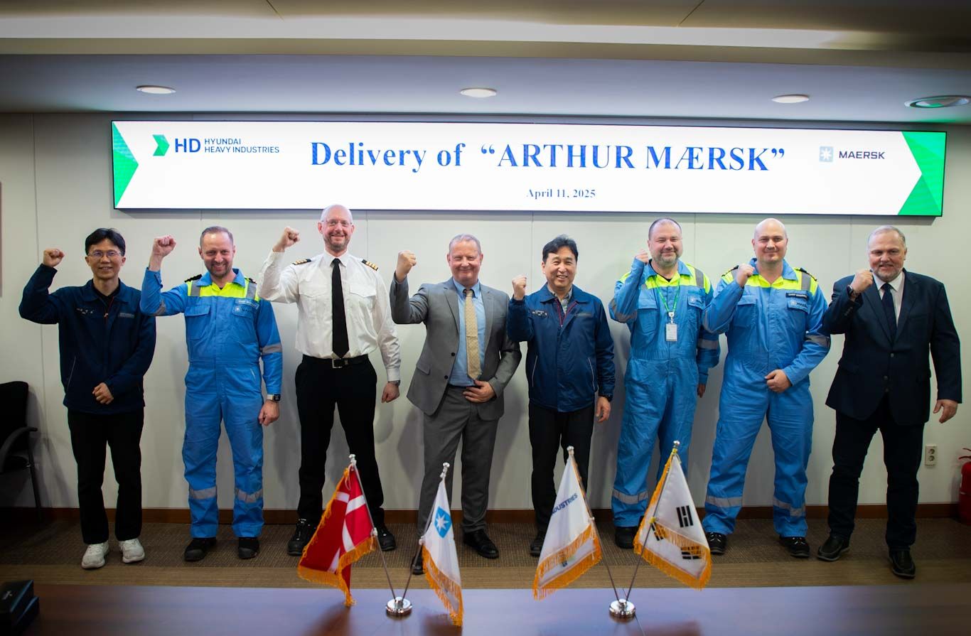 Do floty duńskiego przewoźnika dołącza nowy kontenerowiec wyposażony w napęd dwupaliwowy, umożliwiający pływanie na bardziej przyjaznym środowisku metanolu. Arthur Maersk ma wpisywać się w politykę dekarbonizacji żeglugi.