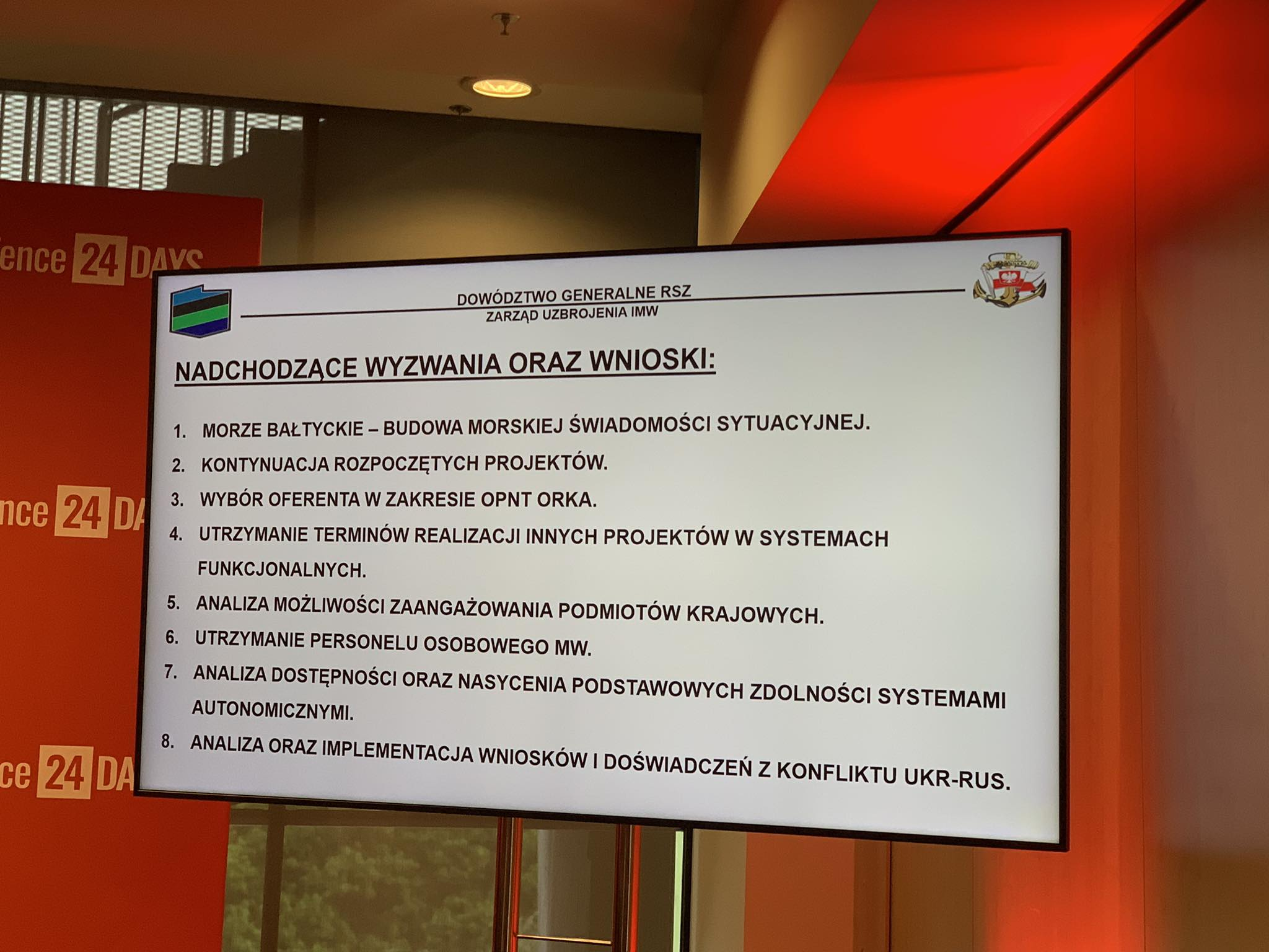Podczas bloku prezentacyjnego pt. "Modernizacja Marynarki Wojennej" podczas Defence24 Days przedstawiciele polskiej Marynarki Wojennej prezentowali plany koncepcje rozwoju morskiego rodzaju sił. Z kolei przedstawiciele firm zbrojeniowych zaprezentowali działalność swoich przedsiębiorstw oraz ofertę dla Polski. Wszyscy zaprezentowali szereg informacji, przy czym nie zabrakło tu zaskoczeń.