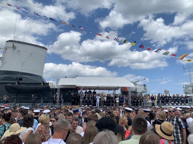 Przy okręcie-muzeum ORP Błyskawica, nieopodal Skweru Kościuszki w Gdyni, 29 czerwca odbyła się ceremonia promocji na pierwszy stopień oficerski absolwentów Akademii Marynarki Wojennej im. Bohaterów Westerplatte.