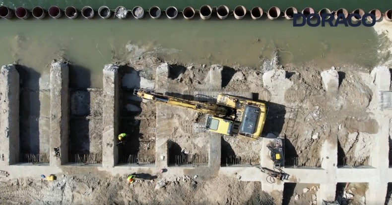 – Obecnie prowadzimy prace związane z wypełnieniem przestrzeni między istniejącą a nowo wykonaną ścianą nabrzeża oraz z kleszczeniem ścianki i montażem odwodnienia liniowego. Wykonywane są prace żelbetowe w zakresie płyty oraz oczepu nabrzeża, geotechniczne w zakresie wzmocnienia gruntu, prace przy realizacji podbudowy drogowej oraz zadania branży sanitarnej, elektrycznej i teletechnicznej. Następuje też realizacja filtra odwrotnego, a także nawierzchni betonowych i prowadzone są podwodne roboty rozbiórkowe w zakresie istniejącego umocnienia dna w obszarze Rampy RO-RO „A” – informuje DORACO w komunikacie opublikowanym na LinkedIn.