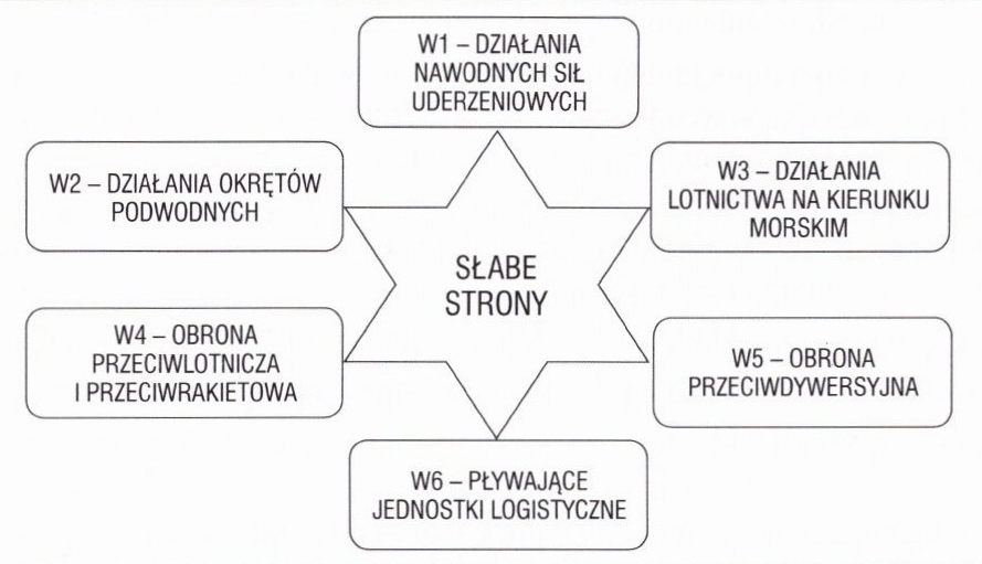 Dr Bohdan Pac w książce "Inżynieria zarządzania programami modernizacyjnymi w siłach morskich" zwraca uwagę na wiele słabych stron organizacji naszej morskiej obrony, a wśród nich wyróżnia działania nawodnych sił uderzeniowych i okrętów podwodnych (a faktycznie jednego), oraz lotnictwa morskiego. Do słabych stron Pac zaliczył również obronę przeciwlotniczą i przeciwrakietową i obronę przeciwdywersyjną.