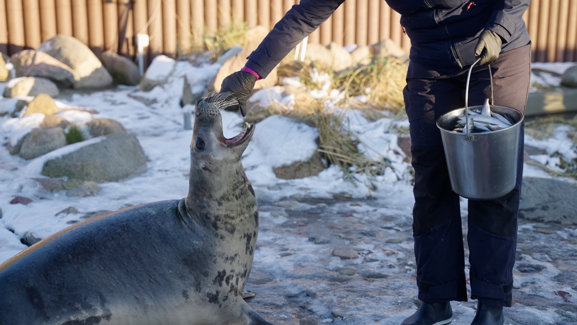 Fokarium będące częścią Stacji Morskiej działa już od ponad dwudziestu lat. Instytucja zajmuje się odtwarzaniem populacji oraz ochroną foki szarej w obszarze południowego Bałtyku. Obecnie w stadzie hodowlanym znajduje się pięciu rezydentów, a najstarszy z nich ma 37 lat. Do zadań opiekunów zwierząt oprócz monitorowania stanu zdrowia fok i dostarczania im pokarmu należy zapewnianie podopiecznym rozrywki oraz ruchu. Odbywa się to poprzez treningi medyczne, które organizowane są dwa razy dziennie. Dzięki takiej aktywności zwierzęta przyzwyczajają się do obecności człowieka. Pomaga to w przygotowaniu ich na późniejsze badania oraz ewentualne zabiegi. Dodatkowo treningi sprawiają, że foki pozostają w stałym ruchu i „pracują na rybę” nie odczuwając frustracji związanej z brakiem polowania.