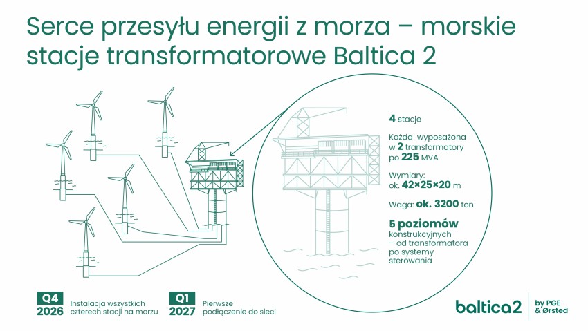 - Morska stacja elektroenergetyczna to tzw. serce farmy wiatrowej. Te olbrzymie konstrukcje mają kluczowe znaczenie dla zapewnienia wydajności morskiej energii wiatrowej, ponieważ umożliwiają przesył energii z turbin, które dla projektu Baltica 2 będą umiejscowione około 40 km od brzegu morza. Instalacja pierwszego transformatora to symboliczny moment pokazujący, że produkcja kolejnych ważnych komponentów dla największej morskiej farmy wiatrowej w Polsce przebiega zgodnie z harmonogramem i najwyższymi standardami bezpieczeństwa – powiedział Ulrik Lange, dyrektor zarządzający projektu Baltica 2 w Ørsted.