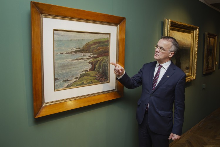 - Obraz „Morze” zdominowały zielenie i turkusy dopełniane rdzawymi brązami, ochrą, szarościami i fioletami. Zestawienie soczystej zieleni masywnych klifów, o mocno zaznaczonych konturach, z turkusem delikatnie rozmalowanych partii wody tworzy efekt kontrastu między ciężkimi zarysami lądu a lekkością oceanu. Horyzont usytuowany jest blisko górnej krawędzi płótna. Partia nieba nie odgrywa zatem odrębnej roli w kompozycji, ale całość tworzy wrażenie przenikania się powietrza i wody - tłumaczy dr Monika Jankiewicz-Brzostowska – kierowniczka Dział Sztuki Marynistycznej.