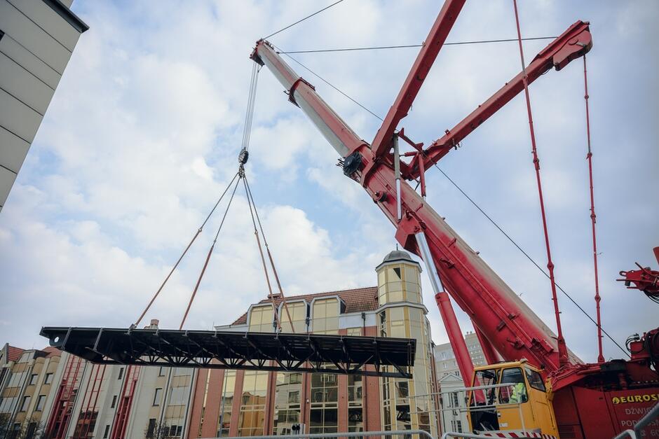 Dariusz Karnaszewski z firmy Granaria Development w rozmowie z portalem miejskim powiedział, że oddzielne elementy przęsła spoczęły na tymczasowych podestach.