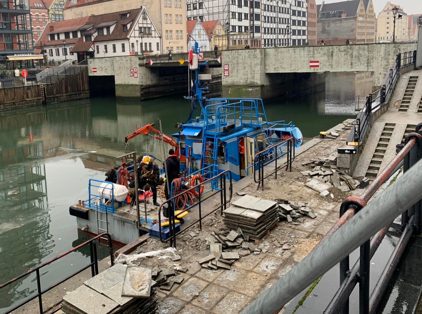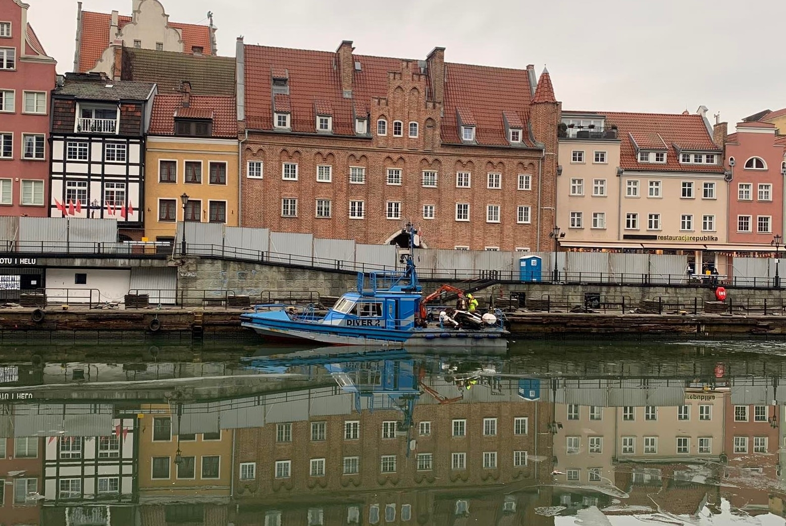 Dziś od godziny 10.00 ekipa nurkowa z wykorzystaniem jednostki nawodnej Diver 2 prowadzi wydobycie odpadów komunalnych z dna rzeki Motławy na odcinku Długiego Pobrzeża, pomiędzy Zielonym Mostem a kładką obrotową.