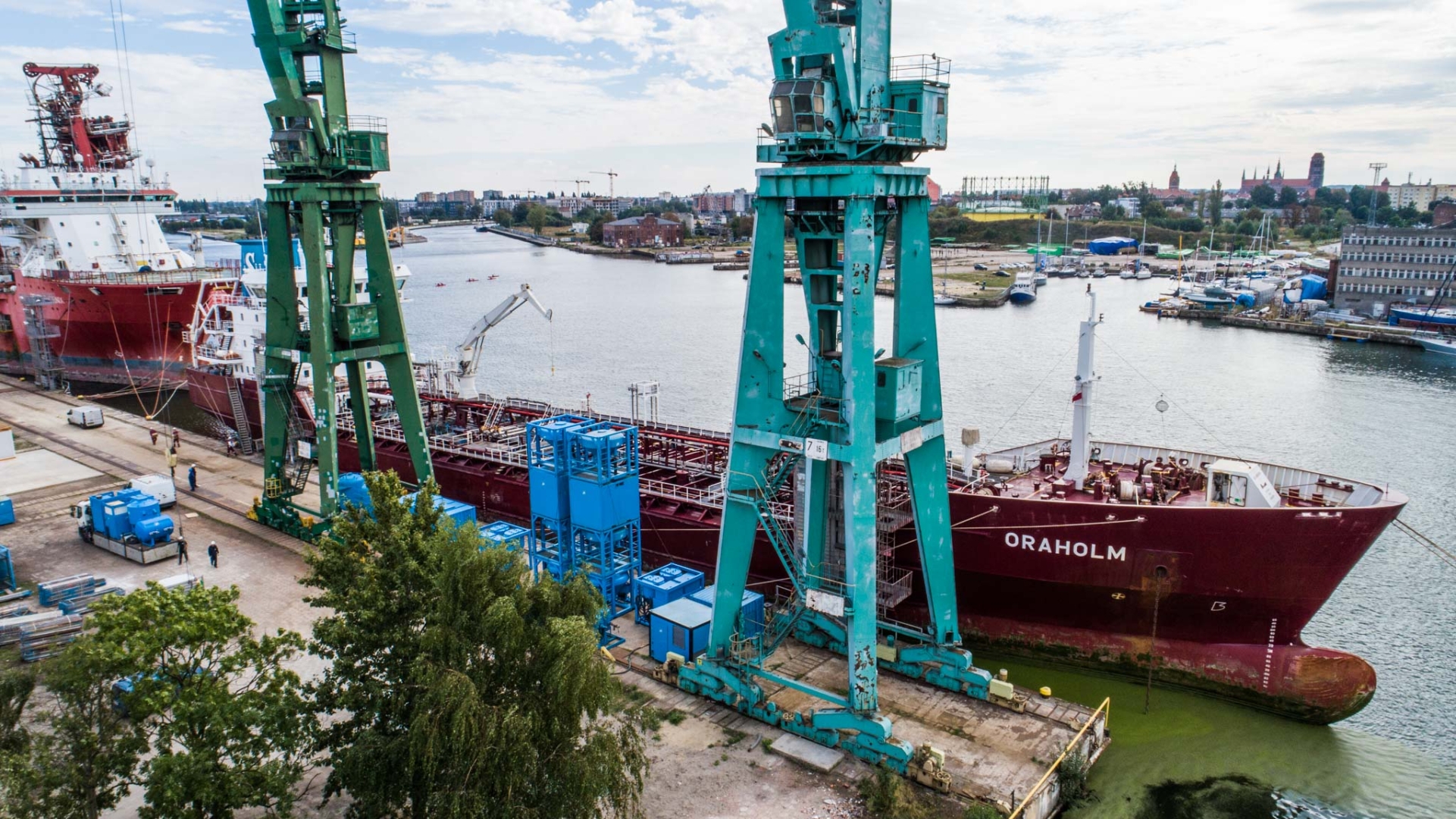 W Gdańsku, przy Nabrzeżu Trawlerowym na terenie PSSE Media Operator, na przełomie miesięcy wrzesień – październik firma Muehlhan Polska Sp. z o.o. przeprowadziła prace konserwacyjno-malarskie zbiorników ładunkowych na jednostce M/T Oraholm (chemikaliowiec).