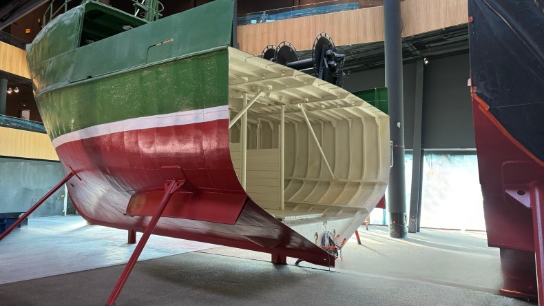 W przestrzeni poświęconej rybołówstwu będzie dominował największy eksponat wystawy – 25-metrowy stalowy kuter, który został już wprowadzony do wnętrza budynku, gdyż ze względu na jego wielkość, nie byłoby to możliwe po zakończeniu prac budowlanych. Na ekspozycji przedstawione zostaną również zagadnienia związane z morską energetyką wiatrową oraz ratownictwem morskim, a także – w kontekście obiektów zabytkowych wydobytych z dna morskiego – kwestie ich zabezpieczenia i konserwacji.