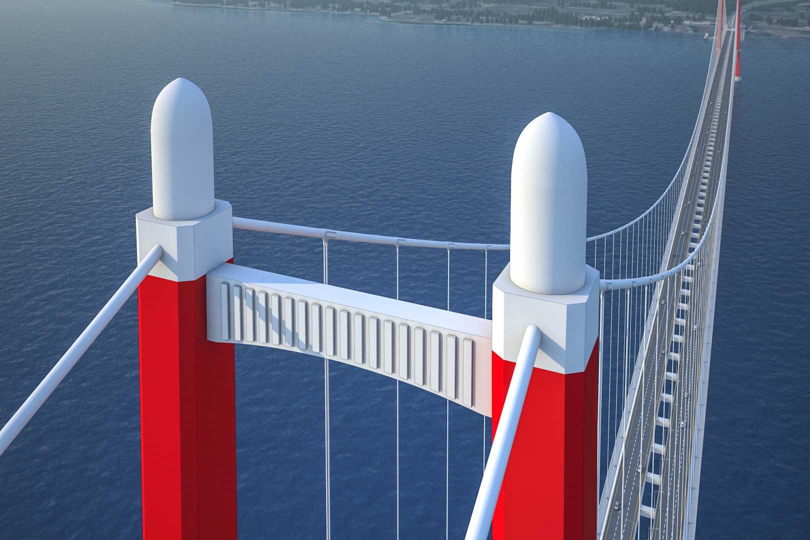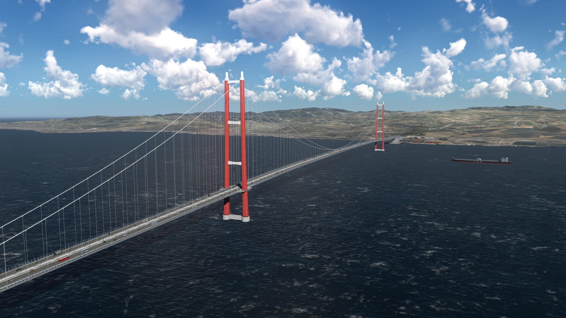 Most ma po trzy jezdnie w każdą stronę i ma skrócić czas przeprawy przez Cieśninę Dardanele z 30 minut (prom) do 4 minut.