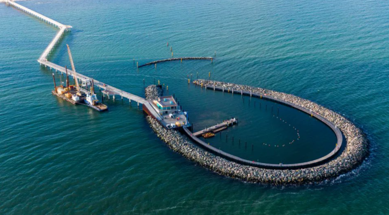 Budowa molo rozpoczęła w sierpniu 2022 roku i pochłonęła 46 milionów euro. Budowla ma pełnić funkcję zarówno atrakcji turystycznej, jak i schronienia dla statków w sytuacjach zagrożenia. Pierwotnie otwarcie planowano na koniec lipca lub początek sierpnia, ale z powodu problemów kadrowych i opóźnień technicznych inaugurację przesunięto.