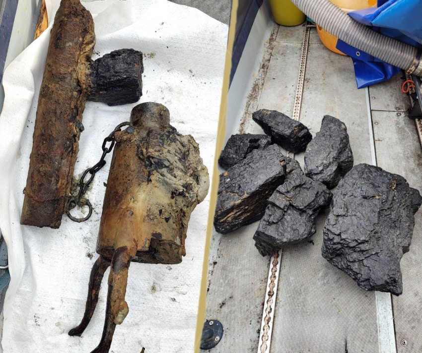 Kolejnym spektakularnym odkryciem jest żeliwny piec typu „koza”, który niegdyś ogrzewał marynarzy w kubryku. To niezwykłe znalezisko, które pozwala dosłownie zajrzeć do wnętrza życia załogi. Obok pieca archeolodzy natrafili także na sporo węgla, który przez dziesięciolecia przetrwał pod wodą.