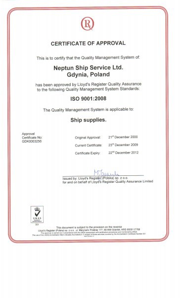 A very important project in order to satisfy all our esteemed customers and assure the highest standard of services, according to our company mission statement and development strategy, was the Certificate of Approval ISO 9001 : 2000, which we received from Lloyd's Register Quality Assurance in the year 2000.