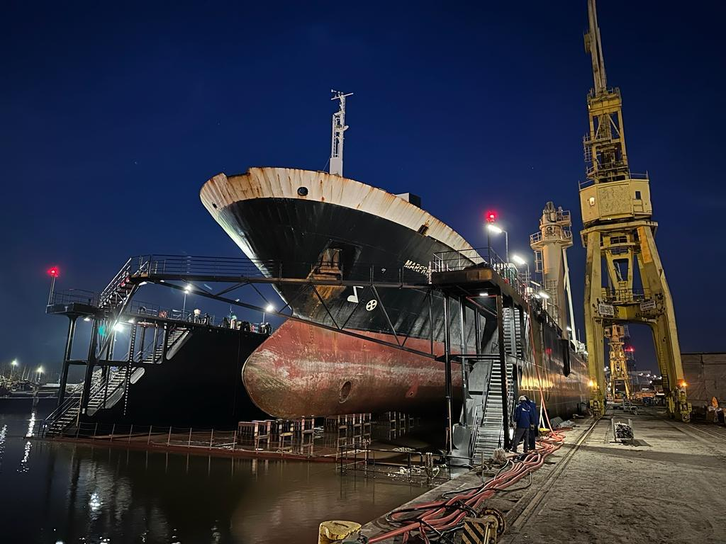 Nim statek trafił do doku NMG1, Po pojawieniu się w szczecińskim zakładzie statek przeszedł rygorystyczne inspekcje zbiorników i innych urządzeń okrętowych pod okiem inspektorów z DNV – Maritime. Następnie, został umieszczony w doku NMG1, mającym nośność 5000 DWT, długość 128 metrów i szerokość 30,5 metra. Został on zbudowany w rekordowo krótkim czasie 18 miesięcy i niedługo po zwodowaniu rozpoczął działalność związaną z remontowaniem statków.