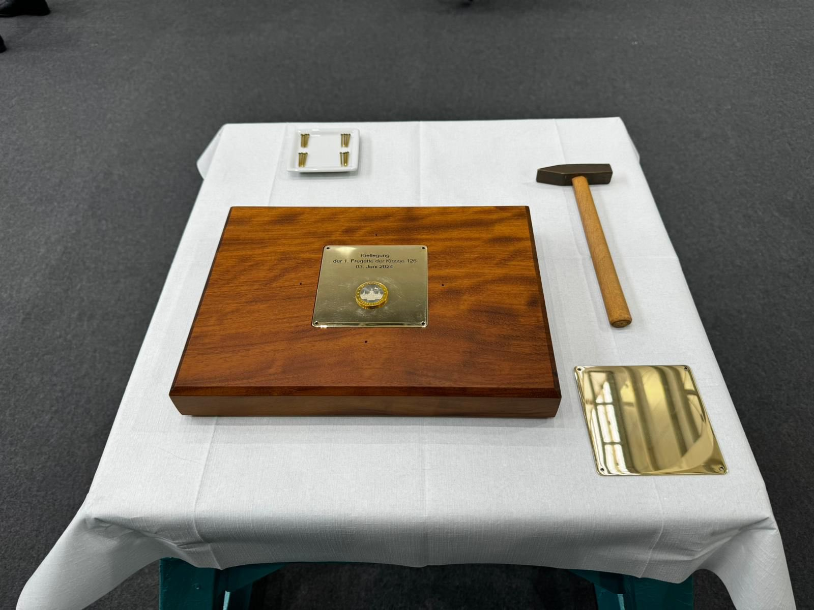 XXI wieku. Podczas wydarzenia, będącego kolejnym, symbolicznym etapem budowy okrętu, tradycyjnym w branży stoczniowej, niemiecki minister obrony wraz z innymi honorowymi gośćmi przybili monetę do drewnianej deski, która następnie została umieszczona przez stoczniowców w belce bloku stępki. Akt ten nawiązuje do mającego antyczne pochodzenie obyczaju umieszczania numizmatów w stępce drewnianych wtedy jeszcze statków i okrętów, aby przynieść szczęście i pomyślność tak jednostce, jak i jej załodze. Budowany od grudnia 2023 roku okręt ma otrzymać nazwę Niedersachsen, a jego wejście do służby ma nastąpić w 2027 lub 2028 roku.