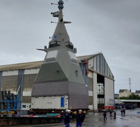 Na zdjęciach widać, jak przez teren stoczni jest przemieszczany element ważący blisko 150 ton. W jego skład wchodzą czujnik panoramiczny i moduł inteligencji (Panoramic Sensor & Intelligence Module, PSIM). Na razie ma trafić na lądowy poligon doświadczalny, gdzie zostanie sprawdzony w zakresie działań związanych z wykrywaniem celów oraz działaniami wywiadowczymi. Budowa tego elementu była wymagająca, gdyż wiązała się z instalacją wrażliwych technologii i czujników, których część stanowi wyposażenie niejawne z racji na swoje przeznaczenie. Dopiero potem ma nastąpić jego integracja z kadłubem fregaty, co ma nastąpić jeszcze w tym roku.