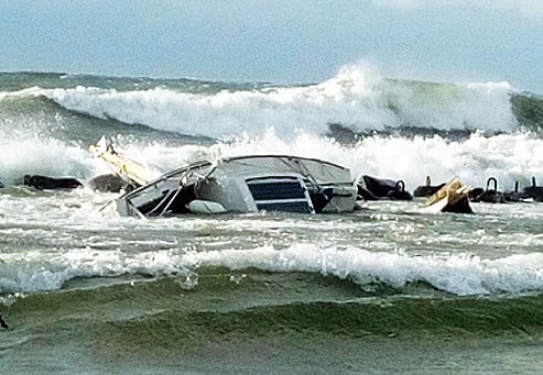 Dwuosobowa załoga próbowała skierować łódź do portu, jednak silny wiatr dochodzący do 9 stopni w skali Beauforta uniemożliwił manewr. W efekcie łódź zniosło na wschodni brzeg, w okolice gwiazdobloków, gdzie rozbiła się o kamienie narzutowe.