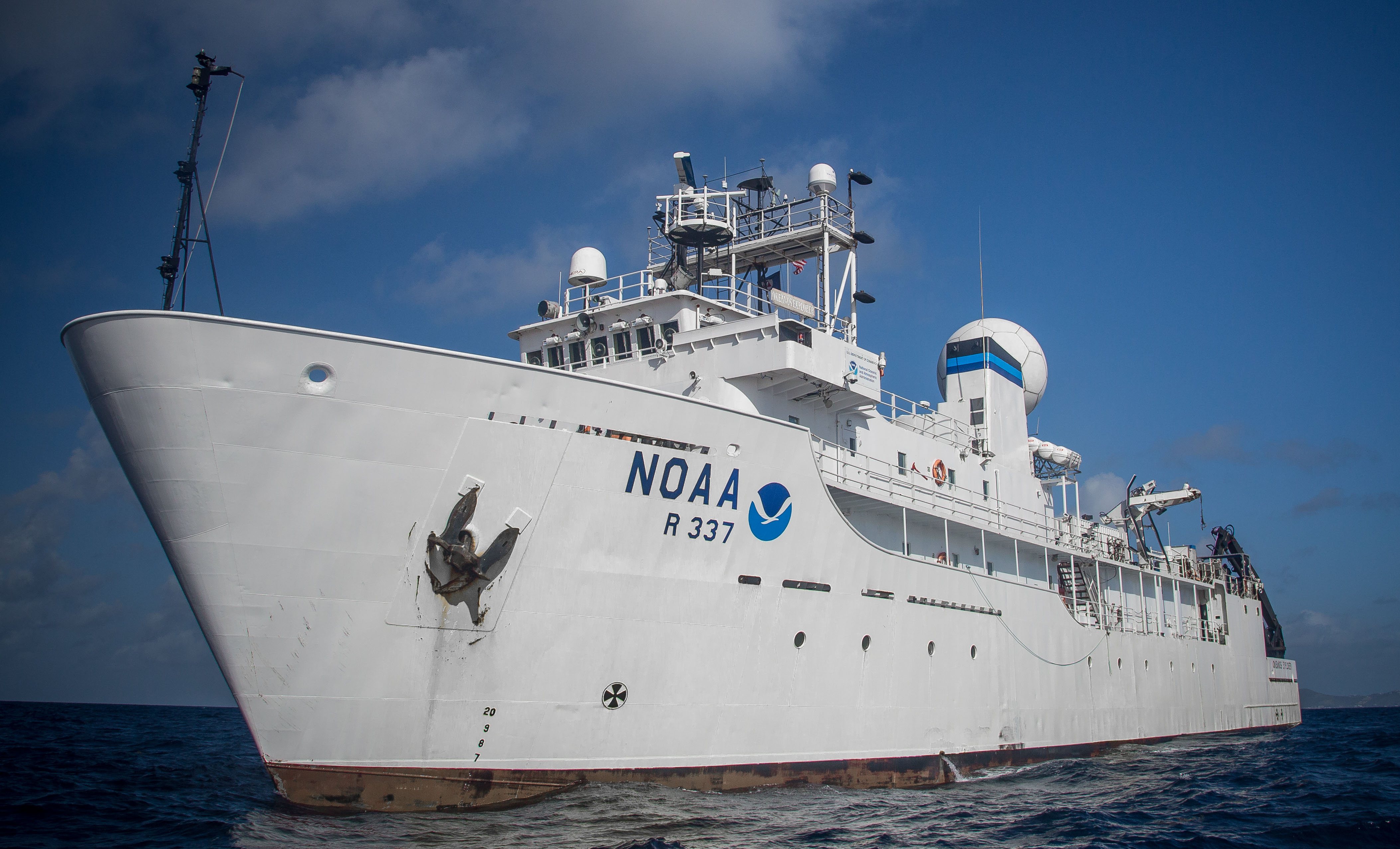 Obok bezzałogowca w przedsięwzięcie został zaangażowany statek badawczy NOAAS Okeanos Explorer (R 337). Jednostka ta jest przeznaczona do eksploracji oceanu w celu odkrywania i pogłębiania wiedzy o głębinach morskich. Należy do władz USA, a obok naukowców na jej pokładzie znajduje się stała załoga, w której skład wchodzą członkowie NOAA oraz cywilni marynarze. Zbudowany w 1989 roku statek pierwotnie był okrętem pomocniczym US Navy, USNS Capable (T-AGOS-16), który do 2004 roku był przeznaczony do badań oceanograficznych na potrzeby armii. Ma 68 metrów długości i 13 metrów szerokości, a zanurzenie to 5,2 metra, a jego wyporność sięga maksymalnie 2265 ton. Autonomiczność to 40 dni. W skład załogi wchodzi 7 oficerów, 3 licencjonowanych inżynierów, 17 członków załogi, 22 naukowców. W skład napędu wchodzą cztery silniki wysokoprężne Caterpillar D398 o mocy 3 200 KM; dwa silniki GE o mocy 800 KM, dwa pędniki rufowe o mocy 250 KM oraz pędnik dziobowy 500 KM. W skład wyposażenia wchodzą sonary i radary przeznaczone do prowadzenia badań podwodnych, w tym nasłuchu i monitorowania. Do tego dochodzą systemy związane z obsługą dronów i bezzałogowych pojazdów.