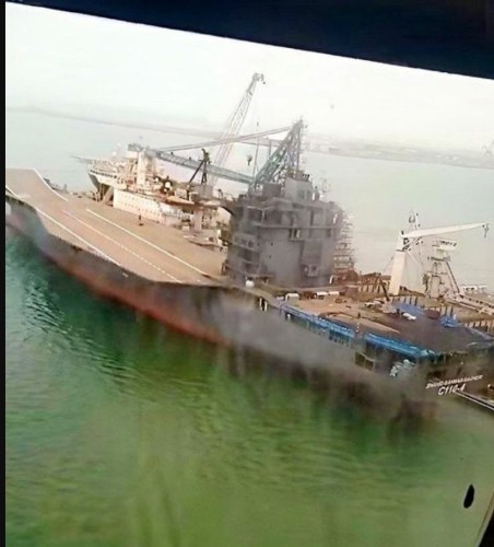Photo of Iranian Navy UAV/drone-carrier IRGC Shahid Bahman Bagheri under construction in Iran- converted from the 24-year-old container ship, Perarin.
