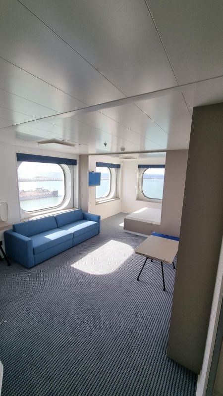 Statek może zabrać na pokład 800 pasażerów i ponad 200 jednostek frachtowych. Uwzględniono również potrzeby osób podróżujących świadomie i ekologicznie instalując na pokładzie 32 stacje ładowania pojazdów elektrycznych.