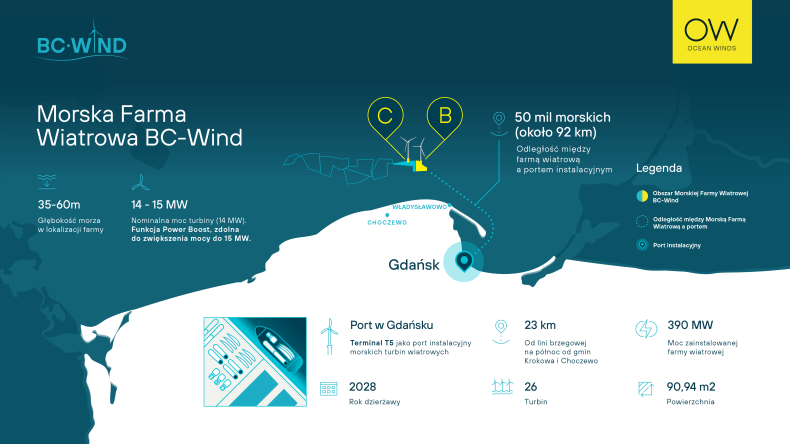 Ocean Winds, globalna spółka specjalizująca się w morskiej energetyce wiatrowej, utworzona w 2020 roku jako joint venture (50/50) pomiędzy EDP Renewables a ENGIE, podpisała umowę na dostawę morskich turbin wiatrowych i świadczenie usług serwisowych dla projektu BC-Wind. Zawarcie umowy uzależnione jest od podjęcia przez Ocean Winds decyzji o rozpoczęciu realizacji inwestycji (Notice to Proceed, NtP).