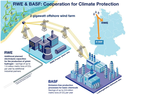 BASF, największy koncern chemiczny na świecie, stoi przed wyzwaniem zdekarbonizowania produkcji przemysłowej. Rozwiązaniem jest elektryfikacja oraz wdrożenie zastosowania wodoru. W tym celu zostanie wybudowana przez RWE farma wiatrowa na morzu, która będzie całkowicie prywatnym przedsięwzięciem.
