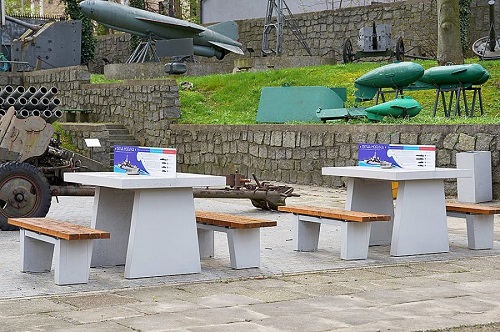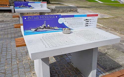 Na wystawie plenerowej obok budynku przy ul. Zawiszy Czarnego, gdzie do tej pory na co dzień można było podziwiać m.in. efektowne armaty czy pociski teraz zagościła nowa atrakcja. To stoły do gry w słynne „okręty” lub, jak mawiają niektórzy, „statki”. W muzealnym wydaniu to nic innego, jak po prostu „Bitwa Morska”, czyli przeniesiona na stół klasyczna wersja popularnej gry planszowo-strategicznej, w której musimy strzelać w ciemno w wybrane pola na planszy przeciwnika – tak, aby „zatopić” rozstawione wcześniej przez niego okręty.