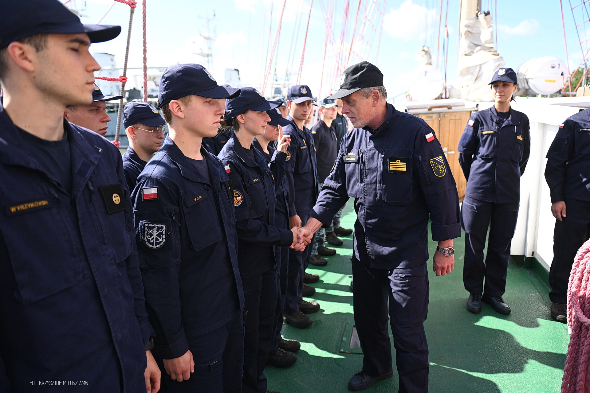 Po czterech tygodniach żaglowiec szkoleniowy Akademii Marynarki Wojennej z podchorążymi na pokładzie wrócił do Portu Wojennego Gdynia. 9 sierpnia na biorących udział w tym przedsięwzięciu czekała kadra dowódcza polskiej Marynarki Wojennej, a także najbliżsi członków załogi oraz podchorążych.