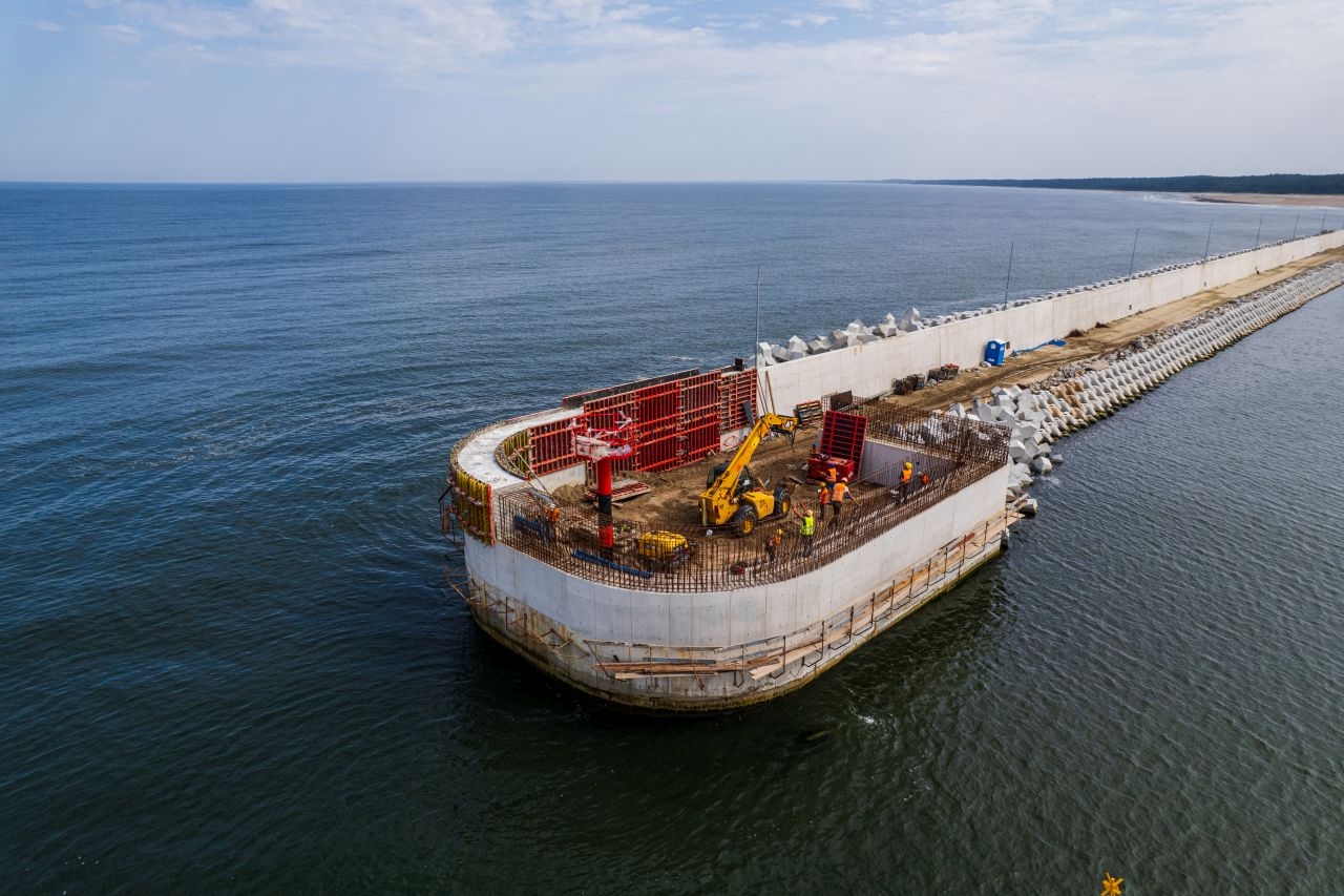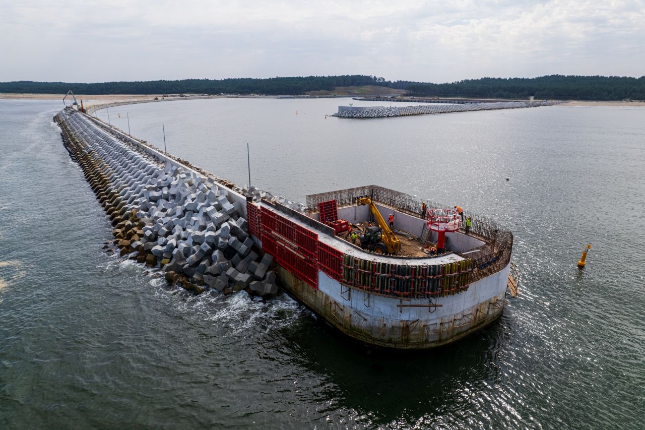 Jedynie roboty wykończeniowe i porządkowe pozostały już także w rejonie kanału, gdzie właśnie zakończono montaż wyposażenia hydrotechnicznego. Ostatnie porządki trwają również na tzw. sztucznej wyspie. Tam z sukcesem zakończono pogrążanie ścianek szczelnych, montaż ściągów stalowych, roboty czerpalne oraz prace związane z zasypem grodzy, z geotubą i z wykonaniem kamienia hydrotechnicznego na zakresie pasa technicznego. Ukończono profilowanie kamienia hydrotechnicznego.