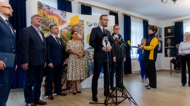 Podczas dzisiejszej konferencji prasowej w Rumi o dotychczasowym przebiegu prac opowiadali Maciej Samsonowicz, doradca Ministra Obrony Narodowej i przewodniczący zespołu, prezydentka Gdyni Aleksandra Kosiorek, wiceprezydent Gdyni Bartłomiej Austen, poseł Kazimierz Plocke, burmistrz Rumi Michał Pasieczny oraz pełnomocnik burmistrza Rumi oraz pełnomocnik burmistrza Rumi ds. projektów strategicznych Jarosław Podsiadło.
