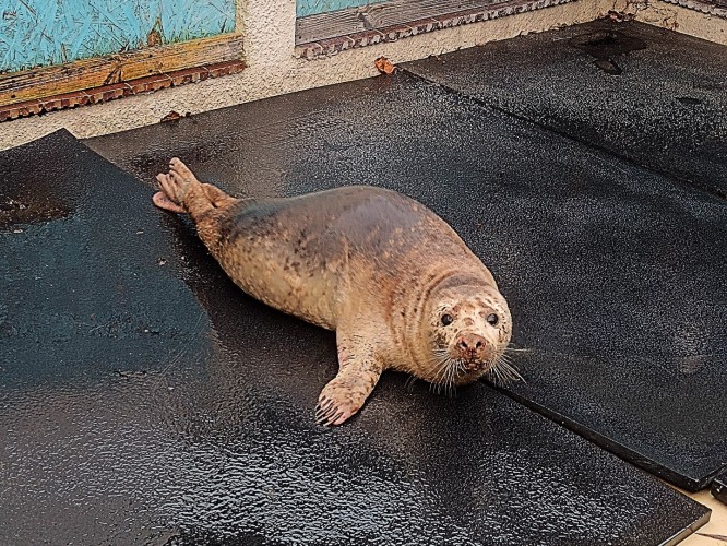 Zwierzę zostało znalezione w weekend na plaży w okolicach Gdyni Orłowa. Opiekunki samicy podały, że jej stan jest poważny: ma problemy skórne, zapalenie płuc i anemię. Wymaga leczenia i rehabilitacji pod okiem wykwalifikowanego zespołu, w tym codziennego podawania leków.