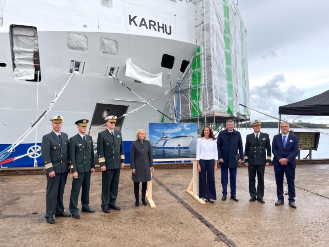 Pierwszy z dwóch wielozadaniowych pełnomorskich patrolowców Fińskiej Straży Granicznej zamówionych w Meyer Turku, których kadłuby powstają w gdańskiej stoczni Baltic Operator, został oficjalnie ochrzczony. Otrzymał imię Karhu. Do służby wejdzie w 2026 roku.