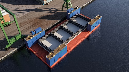 Integralną częścią projektu jest opracowanie rozwiązania informatycznego, algorytmu, który zagwarantuje ciągły monitoring przeprowadzonego procesu obchodzenia się z tymi ładunkami, a także monitoring i dane potrzebne do sterowania systemem balastowym naszego pontono-doku. W tym samym czasie można monitorować to co dzieje się na styku nabrzeża, lądu, a ponton-pływającego.