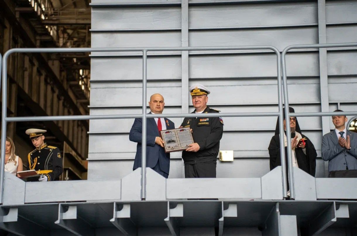 Uroczystość odbyła się z udziałem przedstawicieli stoczni, władz federalnych i okręgowych, resortu obrony i kadry dowódczej sił morskich. Zastępca dowódcy Marynarki Wojennej Federacji Rosyjskiej, adm. Władimir Worobiow, przy dźwiękach orkiestry wojskowej, przymocował płytę stępkową do sekcji przyszłego okrętu.