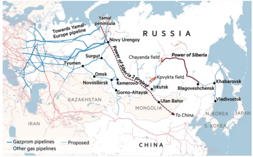 Przewidywana trasa gazociągu, o długości około 6700 km, połączy złoża gazowe w zachodniej Syberii z rynkiem chińskim, przechodząc przez Mongolię i docierając do Sinciang-Ujgurskiego Regionu Autonomicznego.