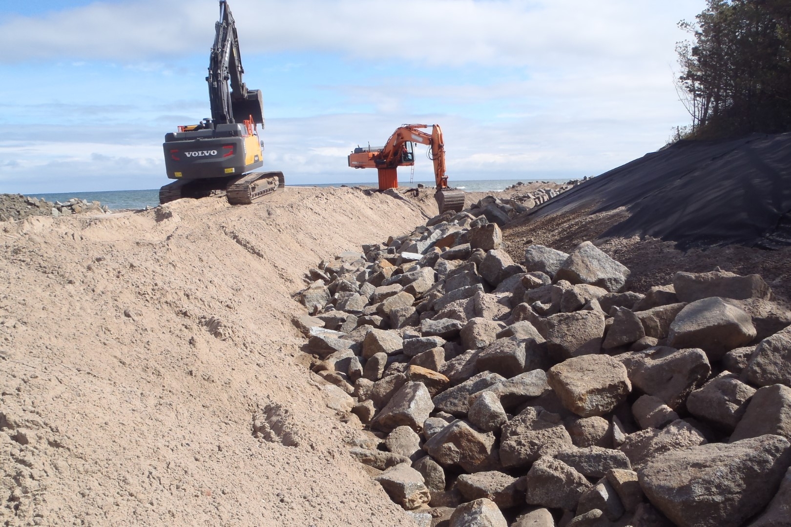 W ramach projektu „Zabezpieczenie zagrożonych odcinków zachodniego wybrzeża” zmodernizowano grupę ostróg brzegowych na odcinku 3 km brzegu morskiego pomiędzy Dziwnówkiem a Dziwnowem, a także wykonano tam sztuczne zasilanie brzegu, zabezpieczono ok. 1,5 km brzegu morskiego pomiędzy Rewalem a Trzęsaczem, gdzie na odcinku ok. 210 m została wybudowana kamienna opaska brzegowa, osiem ostróg brzegowych oraz wykonano sztuczne zasilanie brzegu, a także zmodernizowano 4 ostrogi i wykonano sztuczne zasilanie brzegu w Dziwnowie. Projekt był realizowany z Programu Operacyjnego „Infrastruktura i Środowisko” UE, a jego wartość to ok. 53 mln złotych. W ramach wieloletniego „Programu Ochrony Brzegów Morskich” natomiast powstała m.in. nowa opaska brzegowa w Pogorzelicy, wykonano sztuczne zasilanie brzegu morskiego w miejscowości Wicie oraz usunięto pozostałości starych umocnień brzegowych na plaży w Kołobrzegu.