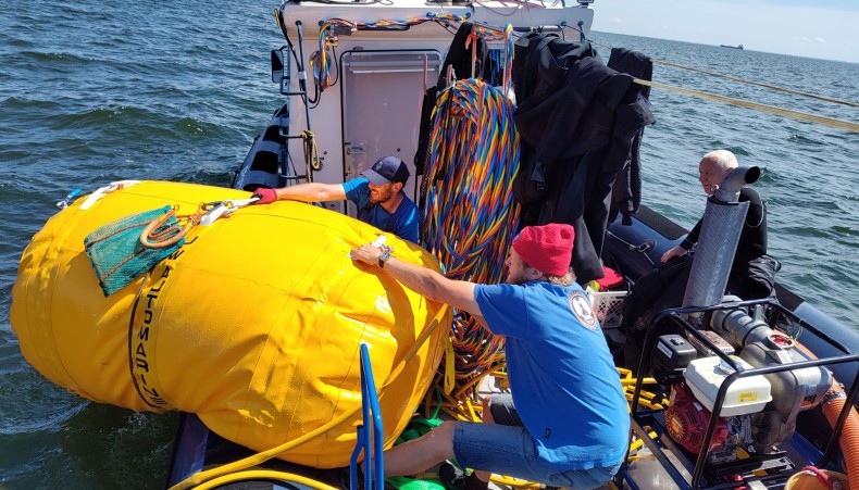 Podczas początkowych działań usunięto stare sieci, liny i przynęty wędkarskie zalegające na konstrukcji wraku. Aby odsłonić drewniane elementy zatopione w piaszczystym dnie, wykorzystano specjalistyczny sprzęt, w tym eżektory oraz płuczki. Tak przygotowane fragmenty statku zostały wyposażone w pasy-zawiesia, które następnie podczepiono do worków wypornościowych (irodyn). - Napełniane sprężonym powietrzem worki pozwalały na precyzyjne kontrolowanie procesu podnoszenia ciężkich części z dna morza – tłumaczy dr Krzysztof Kurzyk, kierownik Działu Badań Podwodnych NMM.