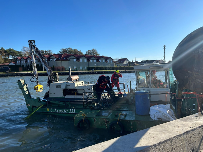 W sobotę rano w Łebie z cum zerwała się niewielka pogłębiarka. Na miejscu była jednostka Morskiej Służby Poszukiwania i Ratownictwa SAR, która pomogła zabezpieczyć statek.