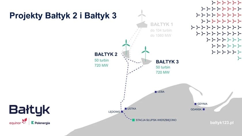 Equinor i Polenergia są o krok od budowy farm wiatrowych na Morzu Bałtyckim. Realizowane przez obie spółki projekty Bałtyk 2 i Bałtyk 3 otrzymały komplet morskich i lądowych pozwoleń na budowę. Morskie farmy wiatrowe Bałtyk to jeden z największych projektów infrastrukturalnych w historii Polski. Wojewoda pomorski wydał łącznie 17 pozwoleń dla projektów Bałtyk 2 i Bałtyk 3, które dotyczą m.in. instalacji na morzu 100 turbin wiatrowych i 2 morskich stacji elektroenergetycznych, ułożenia kabli eksportowych i wewnętrznych oraz instalacji 2 stacji lądowych wraz z infrastrukturą.