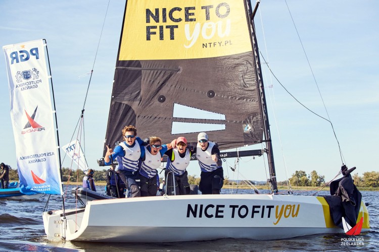Pierwszego dnia regat panowały idealne warunki pogodowe – słońce i stabilny, choć często zmieniający swój kierunek wiatr ze wschodu. Finałową rundę bardzo solidnie rozpoczęli faworyci z PG Racing, kończąc niemalże wszystkie wyścigi w czołowej piątce, co przy oscylacji kierunku wiatru nie było proste nawet dla najlepszych ekip. Na czele była także Flota Gdynia, świetny początek zaliczyły MAG Mechelinki, natomiast absolutną niespodzianką okazała się być dyspozycja UKS Navigo. Załogę z Sopotu na pozycji trymera grota przed regatami wzmocnił Bartosz Andrzejak, medalista mistrzostw Polski w klasie ILCA i to okazało się strzałem w dziesiątkę! Ekipa, która jeszcze przed finałową rundą znajdowała się głęboko w strefie spadkowej, zupełnie odmieniła swoje żeglowanie i po pierwszym dniu zajmowała drugie miejsce. Pozostałe załogi ze strefy spadkowej nie poprawiały swoich wyników, a problemy miały też YKP Warszawa i KW Garland, które walczyły o awans z dobrze żeglującymi ekipami PRO NAUTIS i wzmocnioną SLAVA Racing.