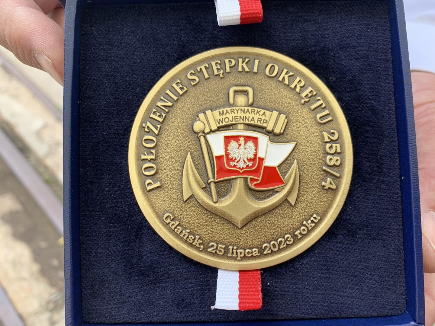 Kulminacyjnym momentem uroczystości było zamontowanie symbolicznego medalu w "stępce", co oznaczało akt jej położenia i rozpoczęcia nowego etapu prac. Następnie szef Szefostwa Techniki Morskiej, prezes PRS i prezes zarządu Remontowa Shipbuilding S.A. złożyli podpisy na symbolicznej karcie położenia stępki.