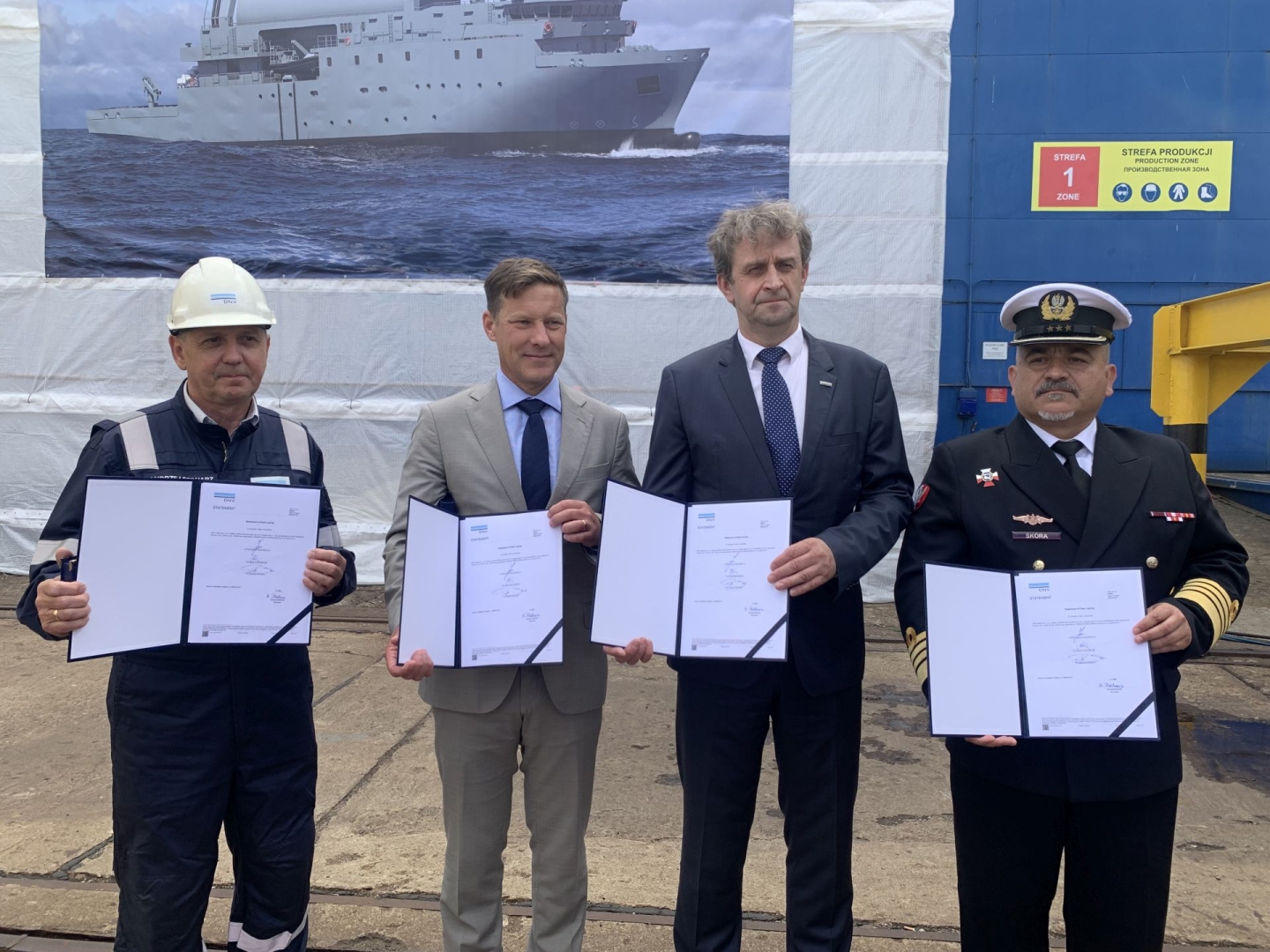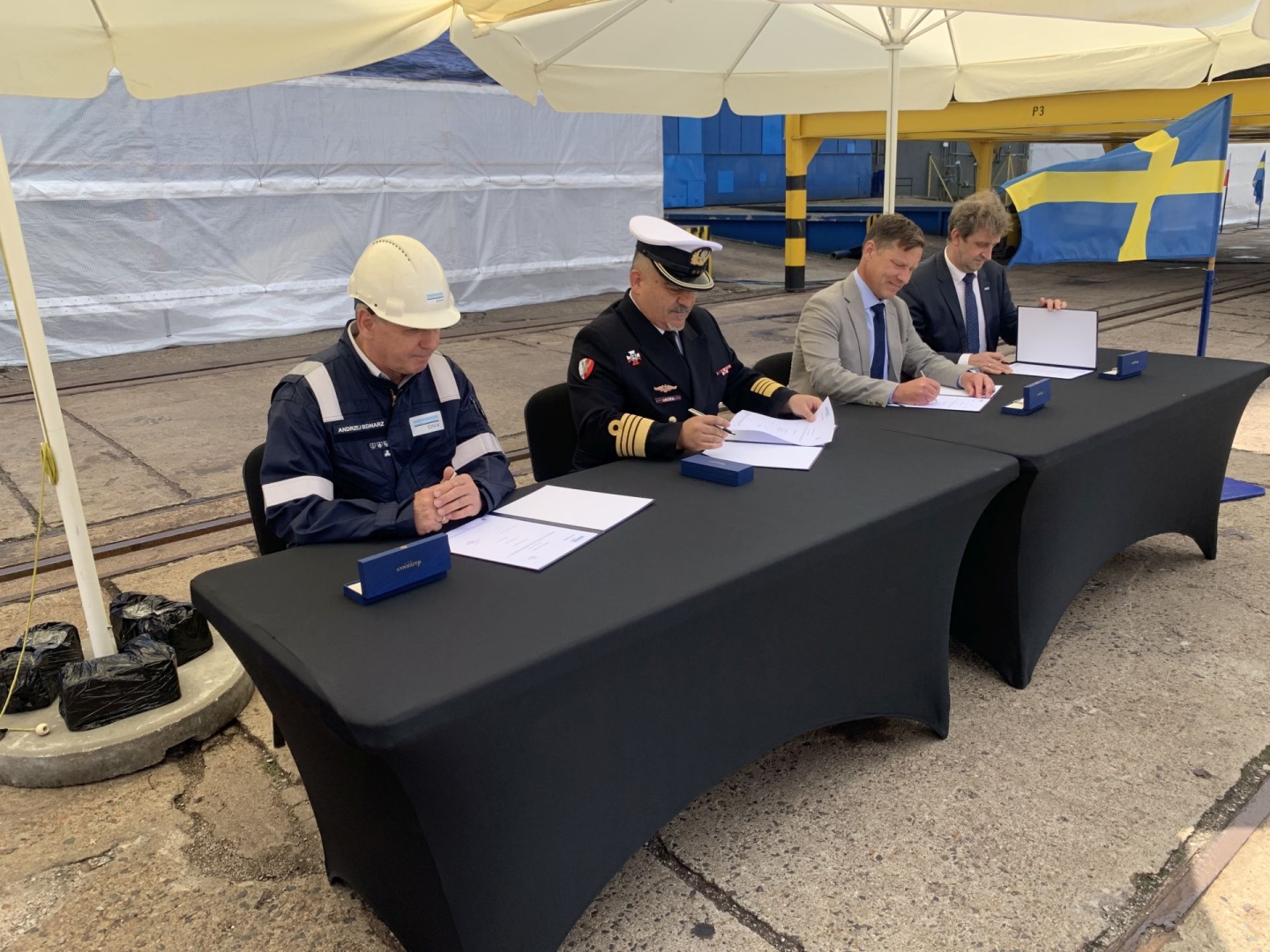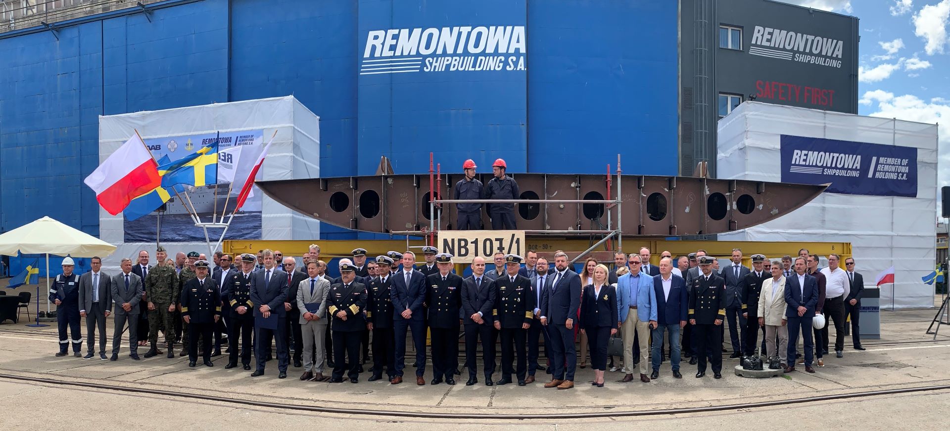 W wydarzeniu wzięli udział m.in. prezes zarządu Remontowa Shipbuilding S.A. Dariusz Jaguszewski, wiceprezes i szef działu okrętów nawodnych w Saab Kockums AB Daniel Oscarson, szef projektu Mangus Nielsen, szef Szefostwa Techniki Morskiej Agencji Uzbrojenia kmdr Piotr Skóra, dowódca 3. FO kmdr Andrzej Ogrodnik, dowódca 8. FOW Piotr Sikora, dowódca Grupy Okrętów Rozpoznawczych 3. FO kmdr por. Marcin Gronek oraz prezesi i pracownicy firm należący do grupy kapitałowej Remontowa Holding.