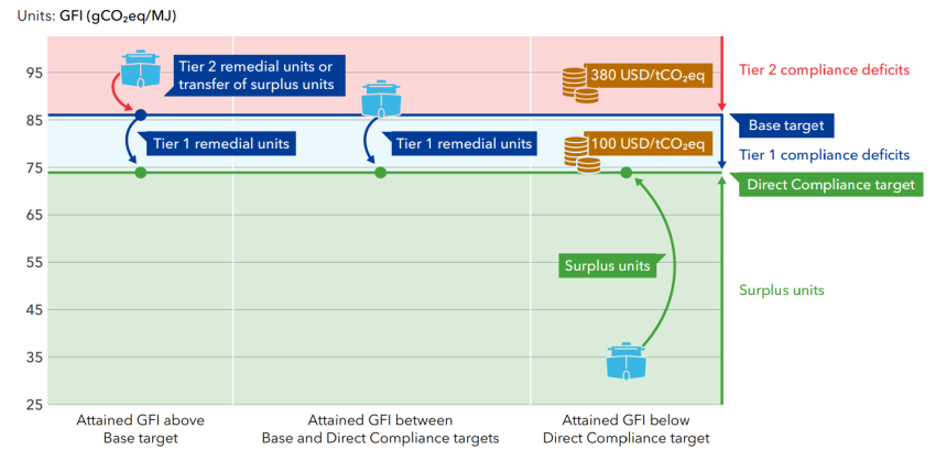 Zgodnie z projektem IMO Net‑Zero Framework (NZF), armatorzy zostaną zobowiązani do stopniowej redukcji intensywności emisji gazów cieplarnianych (GHG), uwzględniając całkowitą emisję łącznie z procesem produkcji paliw tzw. „well-to-wake”. Ponadto objęci zostaną globalnym mechanizmem ekonomicznym, w tym systemem taryfikacji w określonych progach, jeśli intensywność emisji GHG będzie zbyt wysoka, oraz systemem kredytowania dla statków o niższych emisjach, jako gratyfikacja zastosowania paliw alternatywnych.