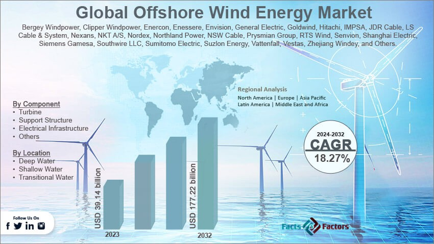 Według raportu opublikowanego przez Facts & Factors, globalny rynek morskiej energetyki wiatrowej (MEW) był wart około 39,14 mld USD w 2023 r. Na podstawie już podpisanych kontraktów i zapowiadanych przetargów przewiduje się, że rynek ten wzrośnie do około 177,22 mld USD do 2032 r. Prognozy opierają się na założeniu, że rynek MEW będzie charakteryzował się średnioroczną stopą wzrostu (CAGR) około 18,27% w latach 2024–2032.