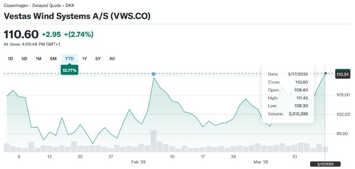 W roku 2024 notowany na giełdzie w Kopenhadze Vestas (VWS.CO) osiągnął przychody w wysokości 17 295 mln EUR, z EBIT 4,3% i całkowitymi inwestycjami w wysokości 1 142 mln EUR. Wartość łącznego portfela zamówień w działach Power Solutions i Service wzrosła do 68,4 mld EUR. Producent turbin stwierdza, że„perspektywy finansowe na rok 2025 są następujące: Przychody mają wynieść od 18 do 20 mld EUR, a marża EBIT przed pozycjami nadzwyczajnymi od 4 do 7 proc”.