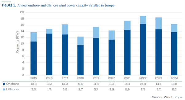 Źródło: Wind Europe, Wind energy in Europe 2024 Statistics and the outlook for 2025-2030